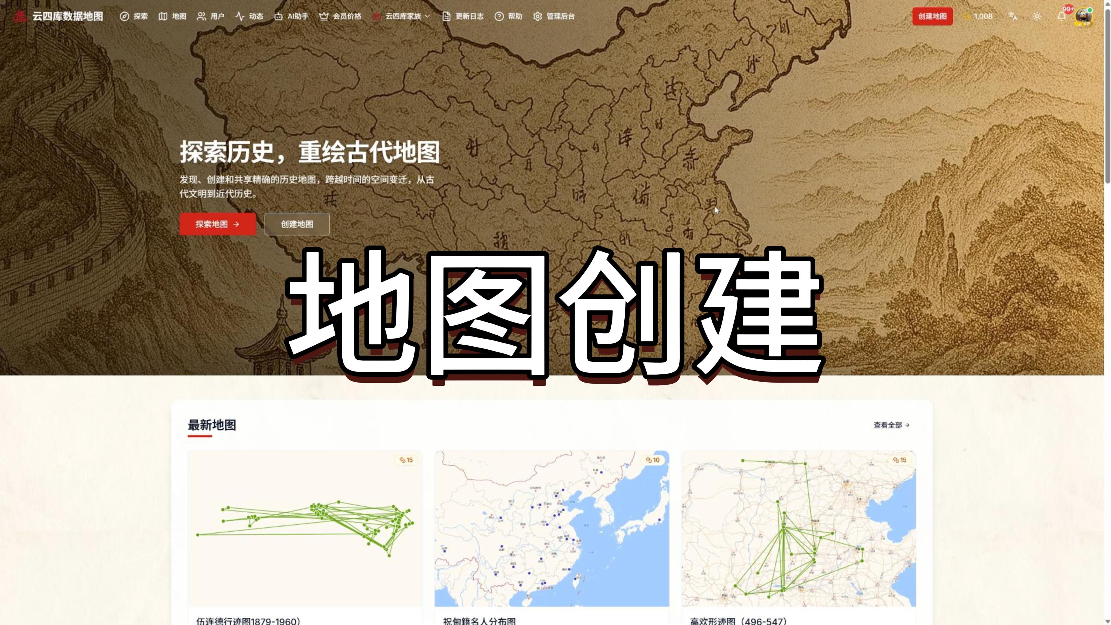 了解如何使用云四库数据地图平台的各项功能,快速上手创建和分享历史地图